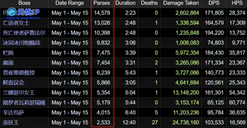 从WCL的统计数据来看:1号-4号BOSS的击杀样本相对较多,从5号BOSS开始下滑。按照1号14578个样本来计算的话,冰龙的通关率为27.5%左右,巫妖王的通关率为17.3%左右。从WCL的统计数据来看:1号-4号BOSS的击杀样本相对较多,从5号BOSS开始下滑。按照1号14578个样本来计算的话,冰龙的通关率为27.5%左右,巫妖王的通关率为17.3%左右。