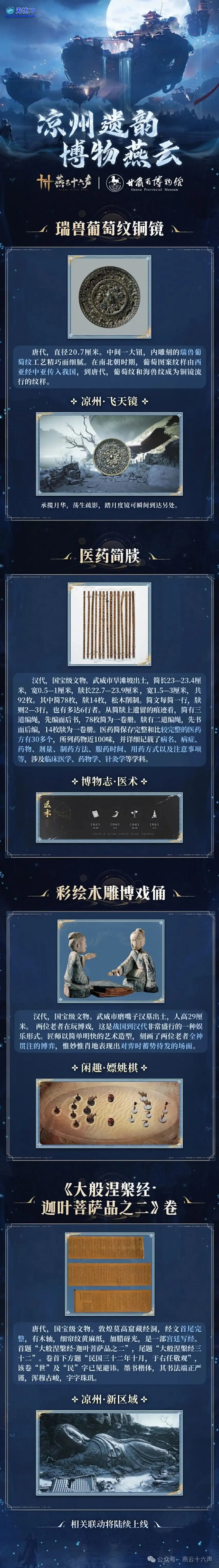 我们也有幸与「甘肃省博物馆」开展联动,将诸多文物珍宝陆续在游戏中还原。我们也有幸与「甘肃省博物馆」开展联动,将诸多文物珍宝陆续在游戏中还原。
