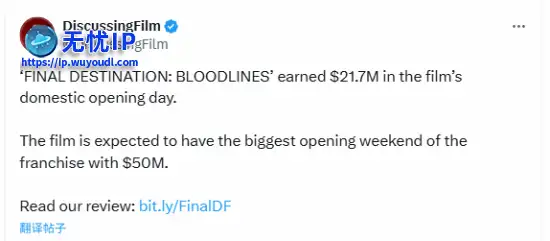 据外媒消息,《死神来了》系列最新作《死神来了6》北美地区首映成绩喜人。据外媒消息,《死神来了》系列最新作《死神来了6》北美地区首映成绩喜人。