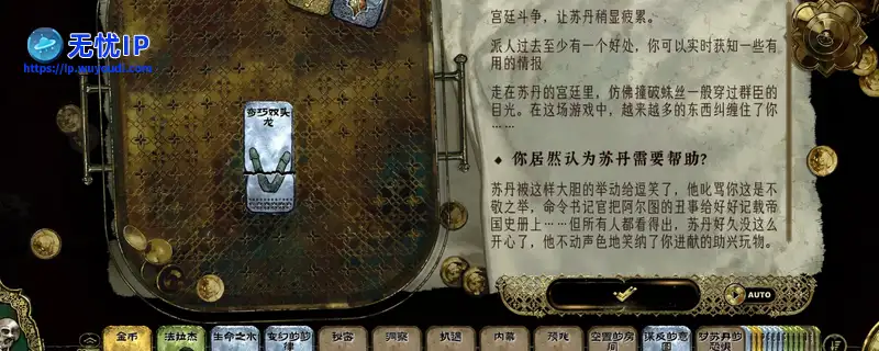 如果提前装上生命权杖,且灵视较低无幻痛,会带来一些额外事件,名气传到苏丹耳朵里后会触发殿前试合,这是一个死亡高发的事件,需要带梅姬且需要有激情(激情是否需要达到一定数值忘记了),否则会死。如果提前装上生命权杖,且灵视较低无幻痛,会带来一些额外事件,名气传到苏丹耳朵里后会触发殿前试合,这是一个死亡高发的事件,需要带梅姬且需要有激情(激情是否需要达到一定数值忘记了),否则会死。