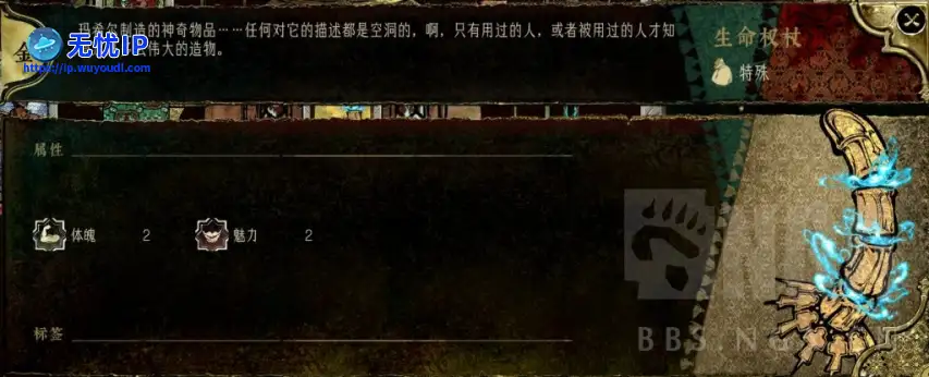 生命权杖装上后,如果灵视≥5会触发幻痛,带来疯狂,此时可以用生命之水将生命权杖卸下,卸下的生命权杖可以拖入俺寻思可以制造承阳剑,每7天战斗 3,在合适的时候可以拔下来用。生命权杖装上后,如果灵视≥5会触发幻痛,带来疯狂,此时可以用生命之水将生命权杖卸下,卸下的生命权杖可以拖入俺寻思可以制造承阳剑,每7天战斗 3,在合适的时候可以拔下来用。