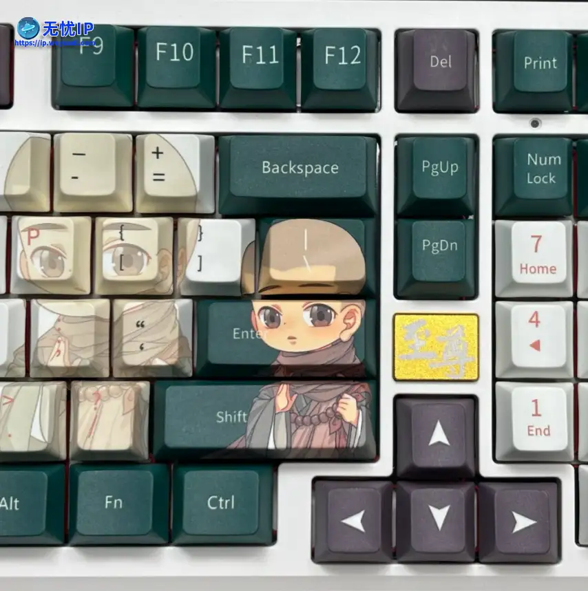 SHIFT键帽用了象征虚竹过往经历的禅杖logo。SHIFT键帽用了象征虚竹过往经历的禅杖logo。