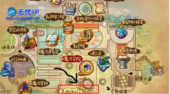 2、打开魔法城堡地图,选择“竞技场大厅”。2、打开魔法城堡地图,选择“竞技场大厅”。