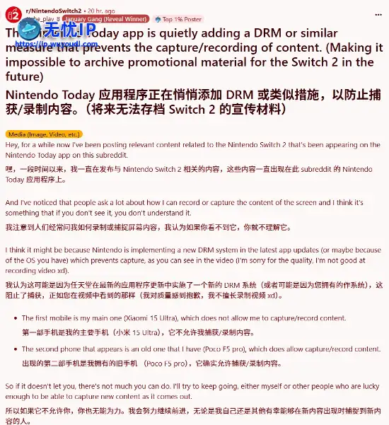 他进一步指出,Nintendo最近推出的更新可能引入了一种新的DRM系统,专门防止用户捕捉或录制应用内的内容。例如,在他的测试中,使用的小米15 Ultra手机无法录制内容,而另一部老旧的Poco F5 Pro手机则可以正常录制。他进一步指出,Nintendo最近推出的更新可能引入了一种新的DRM系统,专门防止用户捕捉或录制应用内的内容。例如,在他的测试中,使用的小米15 Ultra手机无法录制内容,而另一部老旧的Poco F5 Pro手机则可以正常录制。