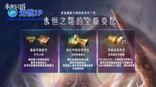 在此次更新中,永恒之塔迎来了诸多变化。角色最高等级提升至65级,玩家在提升角色等级的过程中,不仅能获得数值上的增长,更能解锁新技能,深度体验游戏内容。成长升级结构也发生变化,60级之前可体验快速成长系统,从英雄级副本开始进行深度游戏体验。顶级武器获取方式也有调整,玩家参与提亚玛兰塔梅萨的各种玩法,收集龙帝记录数相关材料,消耗指定数量材料,就有机会获得当前版本顶级武器。在此次更新中,永恒之塔迎来了诸多变化。角色最高等级提升至65级,玩家在提升角色等级的过程中,不仅能获得数值上的增长,更能解锁新技能,深度体验游戏内容。成长升级结构也发生变化,60级之前可体验快速成长系统,从英雄级副本开始进行深度游戏体验。顶级武器获取方式也有调整,玩家参与提亚玛兰塔梅萨的各种玩法,收集龙帝记录数相关材料,消耗指定数量材料,就有机会获得当前版本顶级武器。