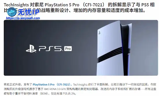 研究机构TechInsights近日发布了对PS5 Pro的拆解分析文章。搭载了基于AMD RDNA 3.0 GPU架构的定制处理器,配备升级版内存子系统与扩容存储,物料清单成本仅较标准版PS5高出2%。研究机构TechInsights近日发布了对PS5 Pro的拆解分析文章。搭载了基于AMD RDNA 3.0 GPU架构的定制处理器,配备升级版内存子系统与扩容存储,物料清单成本仅较标准版PS5高出2%。