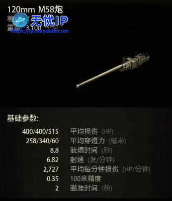 T110E5的120毫米口径坦克炮穿甲弹单发伤害为400点,穿深为258/340毫米。坦克基础DPM为2844,折合8.44秒装填一发炮弹。坦克的炮控相当好,让它甚至可以在近战中“甩炮”。8度的火炮俯角让它可以在崎岖地形里战斗,可以说T110E5的火力是相当强大的,无论在炮弹穿深、DPM、射速与炮控上都很难挑剔,这就是这位“角斗士”手中的利剑,能对敌人发动致命的连续劈砍。T110E5的120毫米口径坦克炮穿甲弹单发伤害为400点,穿深为258/340毫米。坦克基础DPM为2844,折合8.44秒装填一发炮弹。坦克的炮控相当好,让它甚至可以在近战中“甩炮”。8度的火炮俯角让它可以在崎岖地形里战斗,可以说T110E5的火力是相当强大的,无论在炮弹穿深、DPM、射速与炮控上都很难挑剔,这就是这位“角斗士”手中的利剑,能对敌人发动致命的连续劈砍。