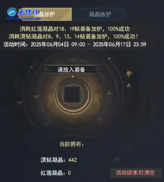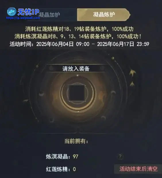 在活动界面中,分为了凝晶加护和凝晶炼护两大功能,少侠可以根据自己需要对装备进行加护或者炼护的需求自行切换页面。放入在背包内的装备,就可以接着进行相关操作咯!在活动界面中,分为了凝晶加护和凝晶炼护两大功能,少侠可以根据自己需要对装备进行加护或者炼护的需求自行切换页面。放入在背包内的装备,就可以接着进行相关操作咯!