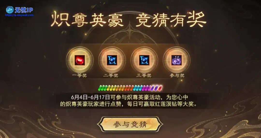 如果成功竞猜点赞本日“帝释英杰”或者“红莲炽尊”,就有机会获得【禁】红莲溟钻、【可交易】雷音溟钻*2、【禁】雷音溟钻*1、封炼化之灵(50)等奖励!如果成功竞猜点赞本日“帝释英杰”或者“红莲炽尊”,就有机会获得【禁】红莲溟钻、【可交易】雷音溟钻*2、【禁】雷音溟钻*1、封炼化之灵(50)等奖励!