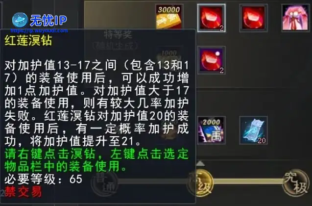 值得一提的是,当装备达到18、19钻时,需要消耗的是红莲凝晶、红莲炼晶声望。这两种声望,在对18、19钻加护、炼护失败时可以获取,通过消耗对应声望在加护、炼护时,18上19钻和19上20钻必然成功。值得一提的是,当装备达到18、19钻时,需要消耗的是红莲凝晶、红莲炼晶声望。这两种声望,在对18、19钻加护、炼护失败时可以获取,通过消耗对应声望在加护、炼护时,18上19钻和19上20钻必然成功。