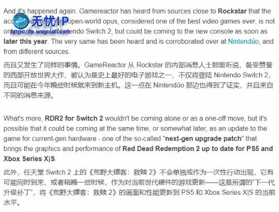 知名内部人士Nate the Hate在最新一期播客节目里也确认了这一消息,说道:“关于这些传言,我只想说消息属实,《荒野大镖客:救赎2》将登陆Switch 2,且还会推出PS5/Xbox Series X&S版本的升级补丁。”知名内部人士Nate the Hate在最新一期播客节目里也确认了这一消息,说道:“关于这些传言,我只想说消息属实,《荒野大镖客:救赎2》将登陆Switch 2,且还会推出PS5/Xbox Series X&S版本的升级补丁。”