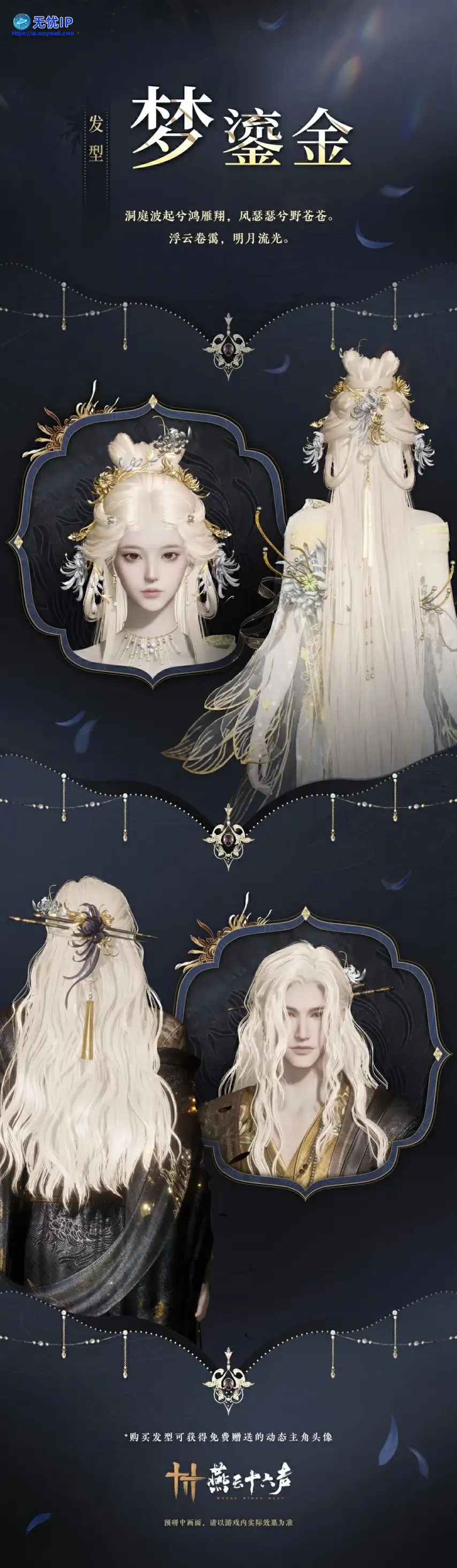 全新发型【梦鎏金】即将上架。6月6日游戏更新后,游侠可前往【和鸣商店】以「八音窍」兑换获得。购买发型的同时可获得免费赠送的动态主角头像。全新发型【梦鎏金】即将上架。6月6日游戏更新后,游侠可前往【和鸣商店】以「八音窍」兑换获得。购买发型的同时可获得免费赠送的动态主角头像。