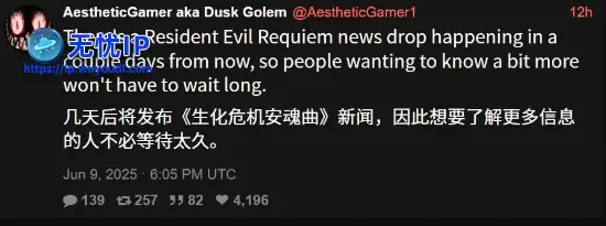 知名爆料人 Dusk Golem 近日发布消息称,关于《生化危机9:安魂曲》的最新情报将在未来几天内公布,玩家无需等待太久。知名爆料人 Dusk Golem 近日发布消息称,关于《生化危机9:安魂曲》的最新情报将在未来几天内公布,玩家无需等待太久。