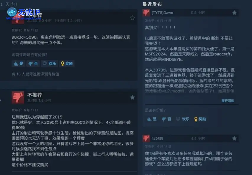 在Steam中文评论区,大量玩家反应《心之眼》的优化就是一坨,顶尖配置(98x3d 5090、7900XTX 9950X,3090等),即便开启了FSR 3也无法稳定4K/60帧。只要离主角稍微远一点,画面直接煳成一坨。在Steam中文评论区,大量玩家反应《心之眼》的优化就是一坨,顶尖配置(98x3d 5090、7900XTX 9950X,3090等),即便开启了FSR 3也无法稳定4K/60帧。只要离主角稍微远一点,画面直接煳成一坨。