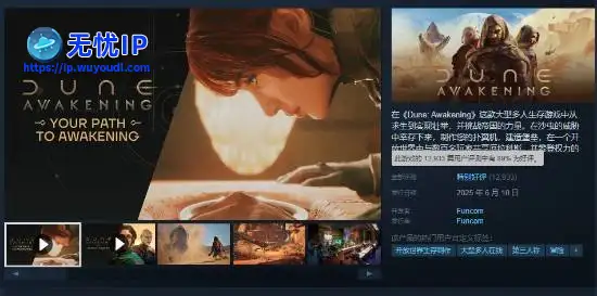 经典科幻IP的大型多人在线生存游戏《沙丘:觉醒》于今日正式解锁,购买了豪华版和终极版的玩家可提前五天进行游玩。目前本作在Steam商店评价等级为“特别好评”,将近13000条评价中有89%的玩家给出了好评。经典科幻IP的大型多人在线生存游戏《沙丘:觉醒》于今日正式解锁,购买了豪华版和终极版的玩家可提前五天进行游玩。目前本作在Steam商店评价等级为“特别好评”,将近13000条评价中有89%的玩家给出了好评。