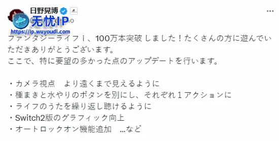 LEVEL-5社长日野晃博今日宣布,《幻想生活i 转圈圈的龙和偷取时间的少女》全球销量突破100万套,日野晃博介绍了游戏新更新的部分内容,一起来看下。LEVEL-5社长日野晃博今日宣布,《幻想生活i 转圈圈的龙和偷取时间的少女》全球销量突破100万套,日野晃博介绍了游戏新更新的部分内容,一起来看下。