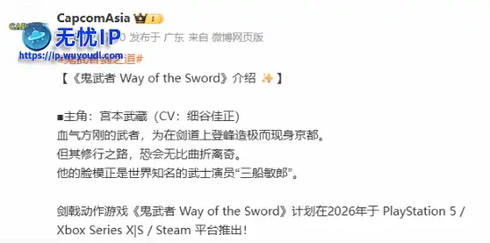 剑戟动作游戏《鬼武者:剑之道》将于2026年登陆PS5、XSX&S以及PC平台,卡普空今日对主角宫本武藏进行了介绍,一起来看下。剑戟动作游戏《鬼武者:剑之道》将于2026年登陆PS5、XSX&S以及PC平台,卡普空今日对主角宫本武藏进行了介绍,一起来看下。