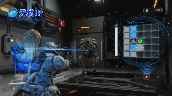 据了解,《虚实万象》的战斗包含“黑客入侵”的迷你游戏。由于装甲镀层的保护,玩家直接射击敌人几乎没有伤害,但小萝莉机器人“戴安娜”可以入侵敌人以暂时固定并暴露他们的内部电路供主角“休”射击。玩家要先瞄准敌人,然后使用手柄按键控制方向来让网格中的光点达到绿色方格,并尽可能多的穿过蓝色方格。据了解,《虚实万象》的战斗包含“黑客入侵”的迷你游戏。由于装甲镀层的保护,玩家直接射击敌人几乎没有伤害,但小萝莉机器人“戴安娜”可以入侵敌人以暂时固定并暴露他们的内部电路供主角“休”射击。玩家要先瞄准敌人,然后使用手柄按键控制方向来让网格中的光点达到绿色方格,并尽可能多的穿过蓝色方格。