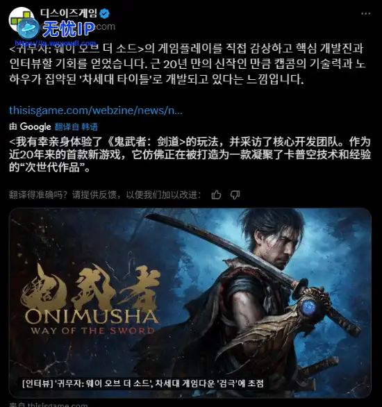日前,韩国媒体thisisgame发布了卡普空新作《鬼武者:剑之道》试玩体验报告,称时隔近20年,这款回归作品聚焦次世代“刀剑对决”体验,重新定义了武士动作游戏。日前,韩国媒体thisisgame发布了卡普空新作《鬼武者:剑之道》试玩体验报告,称时隔近20年,这款回归作品聚焦次世代“刀剑对决”体验,重新定义了武士动作游戏。