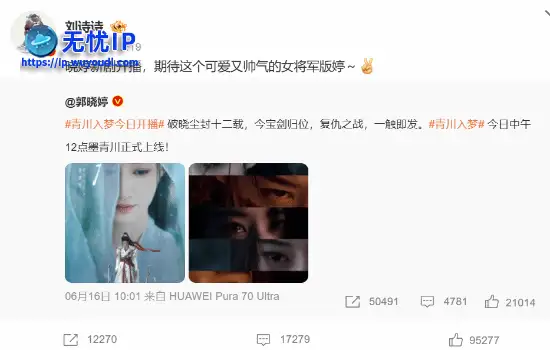 郭晓婷新剧《青川入梦》16日晚开播,,刘诗诗 第一时间发博力挺,字里行间尽显多年深厚情谊,默契十足。郭晓婷新剧《青川入梦》16日晚开播,,刘诗诗 第一时间发博力挺,字里行间尽显多年深厚情谊,默契十足。