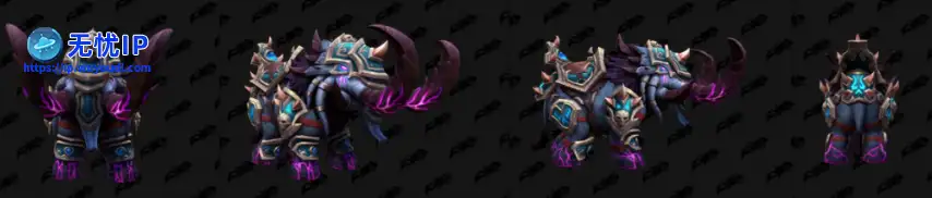 这些外观各异的雷象坐骑都带有浓厚的军团风格,火焰、虚空、雷电与混沌元素齐聚。邪能机甲护甲套装(外观套装)邪能机甲·湛蓝之装