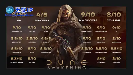俘获媒体的不止是真实沉浸的世界。IGN给《沙丘:觉醒》打出8/10;Eurogamer给出4/5并盛赞其“卓越的生存玩法”;Screenrant表示“沉迷到忘记吃饭”;DualShockers打出9/10并评价“我相信《沙丘:觉醒》将成为我们十年后回顾时会称之为‘史上最佳游戏之一’的作品”。俘获媒体的不止是真实沉浸的世界。IGN给《沙丘:觉醒》打出8/10;Eurogamer给出4/5并盛赞其“卓越的生存玩法”;Screenrant表示“沉迷到忘记吃饭”;DualShockers打出9/10并评价“我相信《沙丘:觉醒》将成为我们十年后回顾时会称之为‘史上最佳游戏之一’的作品”。
