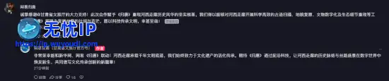 网易《归唐》官方也现身视频评论区,并表示“诚挚感谢@甘肃省文旅厅的大力支持!此次合作赋予《归唐》重现河西走廊历史风华的坚实根基,我们得以能够对河西走廊开展科学高效的古迹扫描、地貌复原、文物数字化及生态细节重现等工作,《归唐》将竭力复现丝路的壮阔与苍茫,愿以科技传承文明,幸甚至哉!”网易《归唐》官方也现身视频评论区,并表示“诚挚感谢@甘肃省文旅厅的大力支持!此次合作赋予《归唐》重现河西走廊历史风华的坚实根基,我们得以能够对河西走廊开展科学高效的古迹扫描、地貌复原、文物数字化及生态细节重现等工作,《归唐》将竭力复现丝路的壮阔与苍茫,愿以科技传承文明,幸甚至哉!”