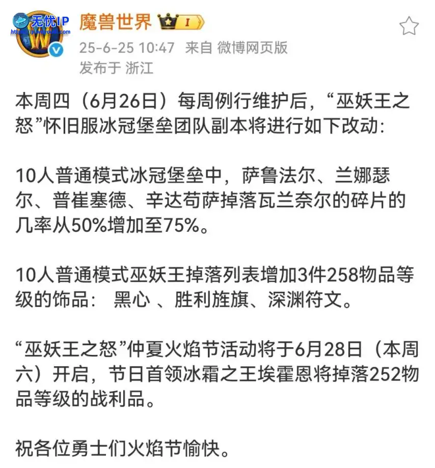 每周三的WLK怀旧服调整又来了,雷火继续鼓励大家打10人ICC,不仅橙锤碎片掉率提升了25%,更关键的是把3件普通冠军的试炼的200装等饰品塞到了10人ICC,而且装等提升到了258。