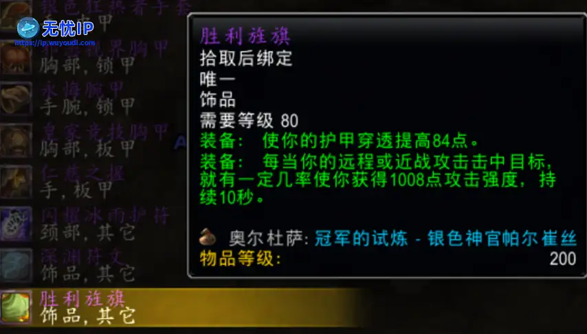 胜利旌旗:物理DPS(如狂暴战、生存猎)的破甲核心,配合天赋可全程覆盖高破甲收益,实战价值和264意志相当。胜利旌旗:物理DPS(如狂暴战、生存猎)的破甲核心,配合天赋可全程覆盖高破甲收益,实战价值和264意志相当。