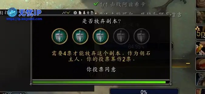 在头像右键点击投票放弃,或输入指令/abandon,发起放弃副本投票,投票通过后5秒后自动出本,出本后不会解散队伍,当然投票通过后退队不会受到惩罚。在头像右键点击投票放弃,或输入指令/abandon,发起放弃副本投票,投票通过后5秒后自动出本,出本后不会解散队伍,当然投票通过后退队不会受到惩罚。