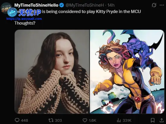 业内爆料账号MyTimeToShineH说,漫威正在考虑让贝拉·拉姆齐出演X战警中的凯蒂·普莱德(幻影猫)。业内爆料账号MyTimeToShineH说,漫威正在考虑让贝拉·拉姆齐出演X战警中的凯蒂·普莱德(幻影猫)。