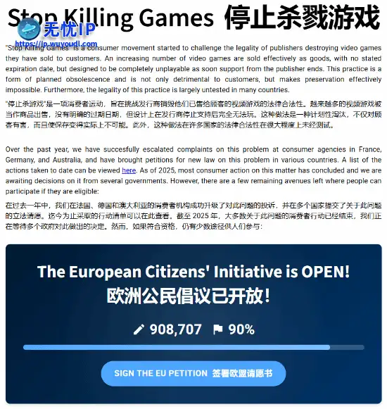 据外媒insider-gaming报道,一项由Ross Scott发起、名为“Stop Killing Games(停止杀戮游戏)”的活动的请愿签名数再度激增,目前已突破90万大关,这项活动旨在保护已被厂商停止支持的游戏。据外媒insider-gaming报道,一项由Ross Scott发起、名为“Stop Killing Games(停止杀戮游戏)”的活动的请愿签名数再度激增,目前已突破90万大关,这项活动旨在保护已被厂商停止支持的游戏。