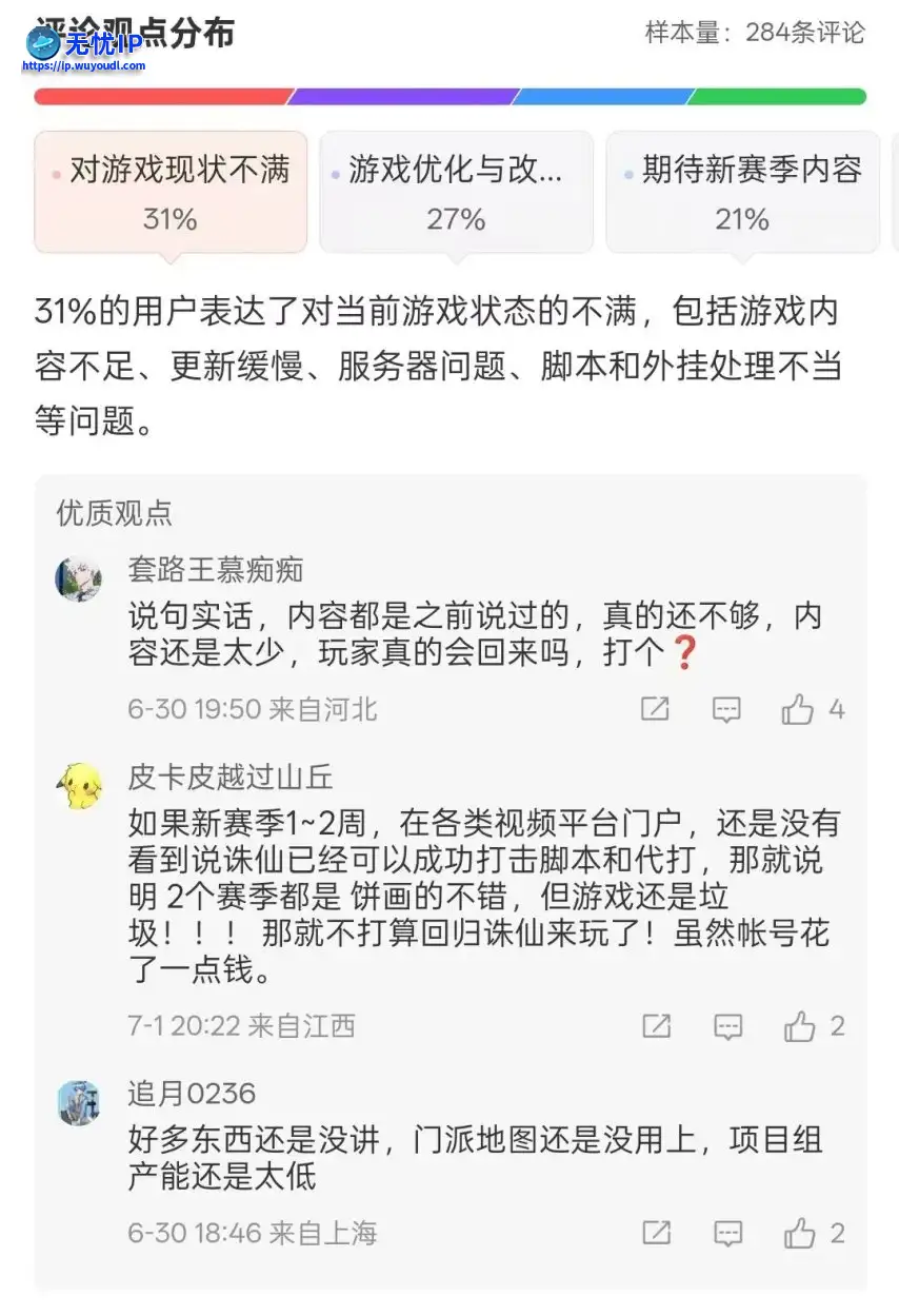 其一,有仙友仍觉着内容过少,产能依旧会是个大问题;其二,对S2赛季官方打击脚本、工作室和代练的能力仍保持怀疑态度;其三,对S2赛季开新服和部分区服没有合并计划表示不理解。其一,有仙友仍觉着内容过少,产能依旧会是个大问题;其二,对S2赛季官方打击脚本、工作室和代练的能力仍保持怀疑态度;其三,对S2赛季开新服和部分区服没有合并计划表示不理解。