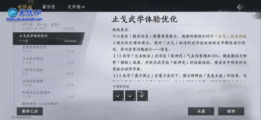 【13】修复了武学「醉梦游春」武学技「红绡香断」在其他游侠视角下丢伞方向与动画不匹配的问题。【13】修复了武学「醉梦游春」武学技「红绡香断」在其他游侠视角下丢伞方向与动画不匹配的问题。