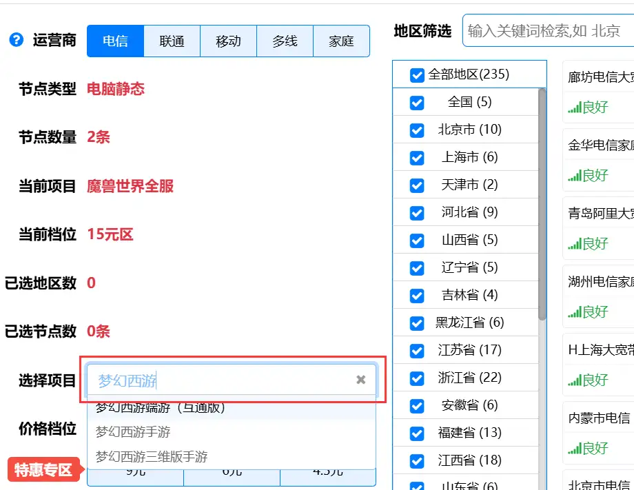 在 选择项目 栏输入新的项目,也可以顺便切换价格和地区,选择好之后 点击右下方 确认切换 即可。