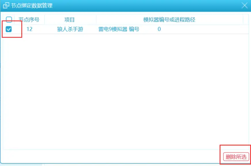 如果需要删除某个绑定信息,可以勾选序号,点击右下方 删除所选。