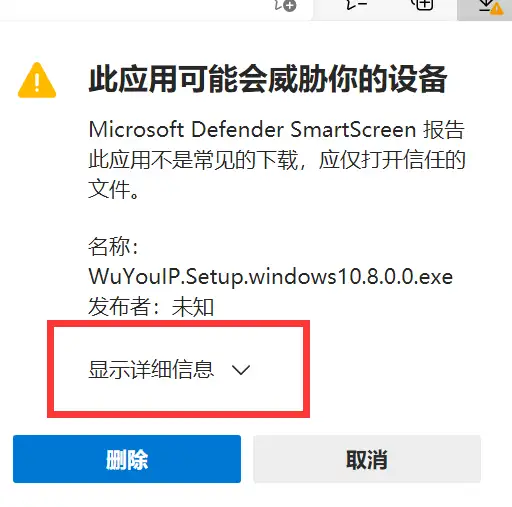 如果是Windows10默认浏览器会提示风险,需要以下操作