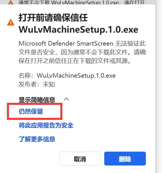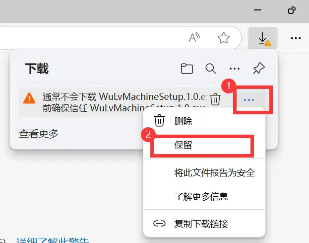 如果是Windows10默认浏览器会提示风险,需要以下操作