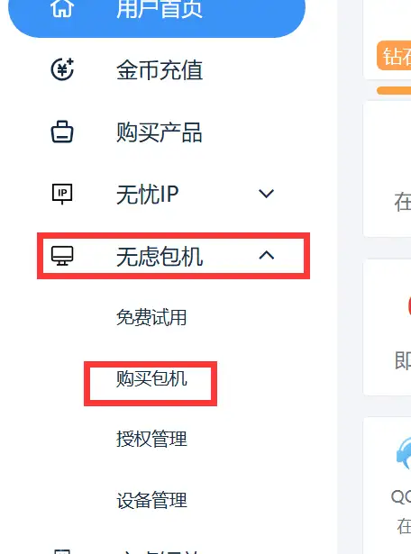 依次点击 无虑包机、购买包机