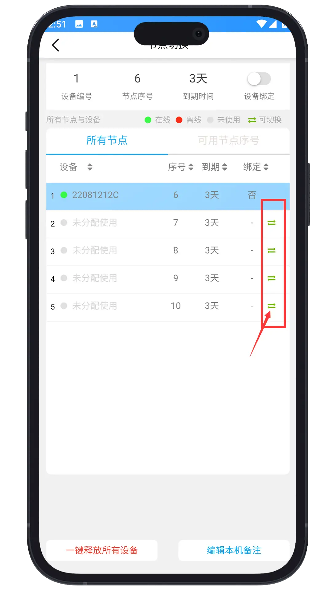 分配节点:每个新手机登录,只要账号下有空余节点都会自动分配一个节点,如果没有分配,点击 重新连接 就会自动分配节点。